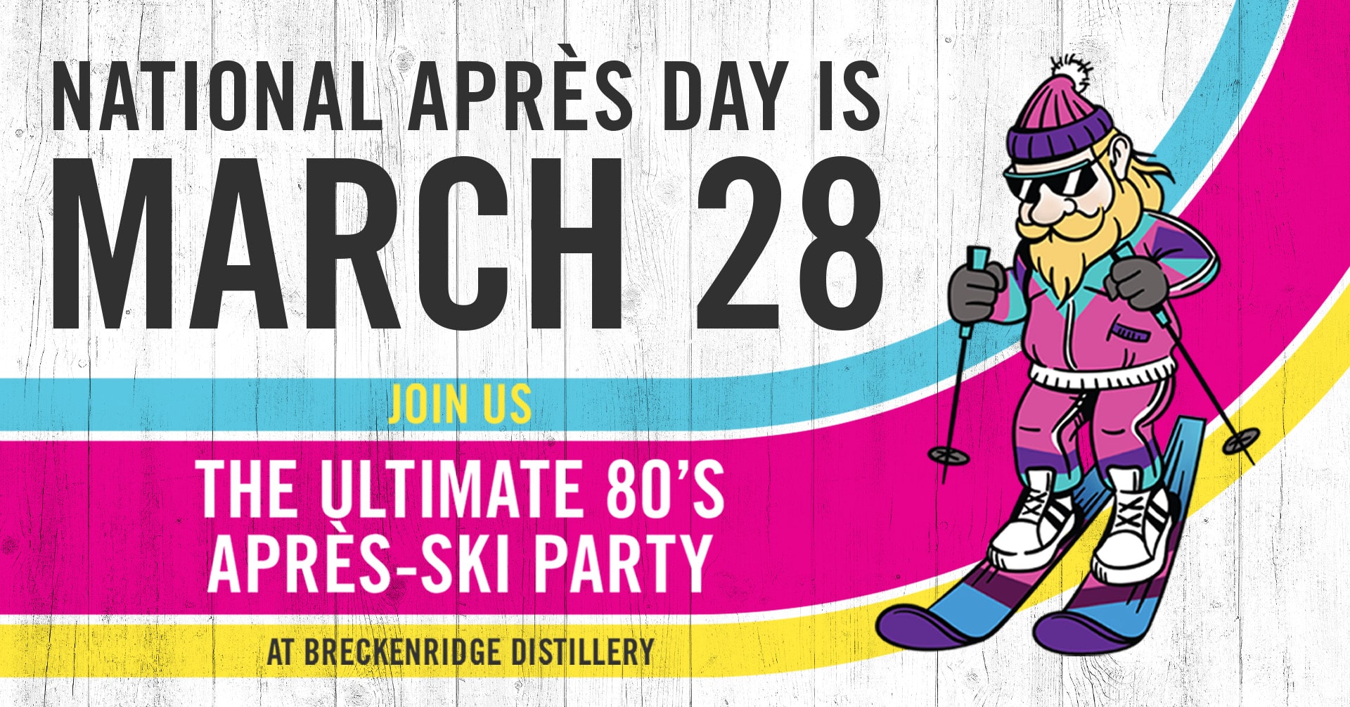 Wear your best 80s Après Gear and join us for the ULTIMATE 80’s Party at Breckenridge Distillery for National Après Day on March 28th!